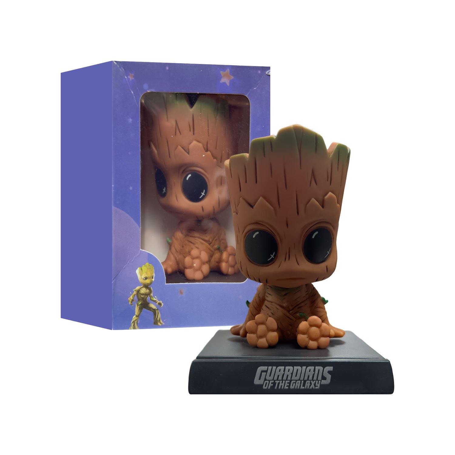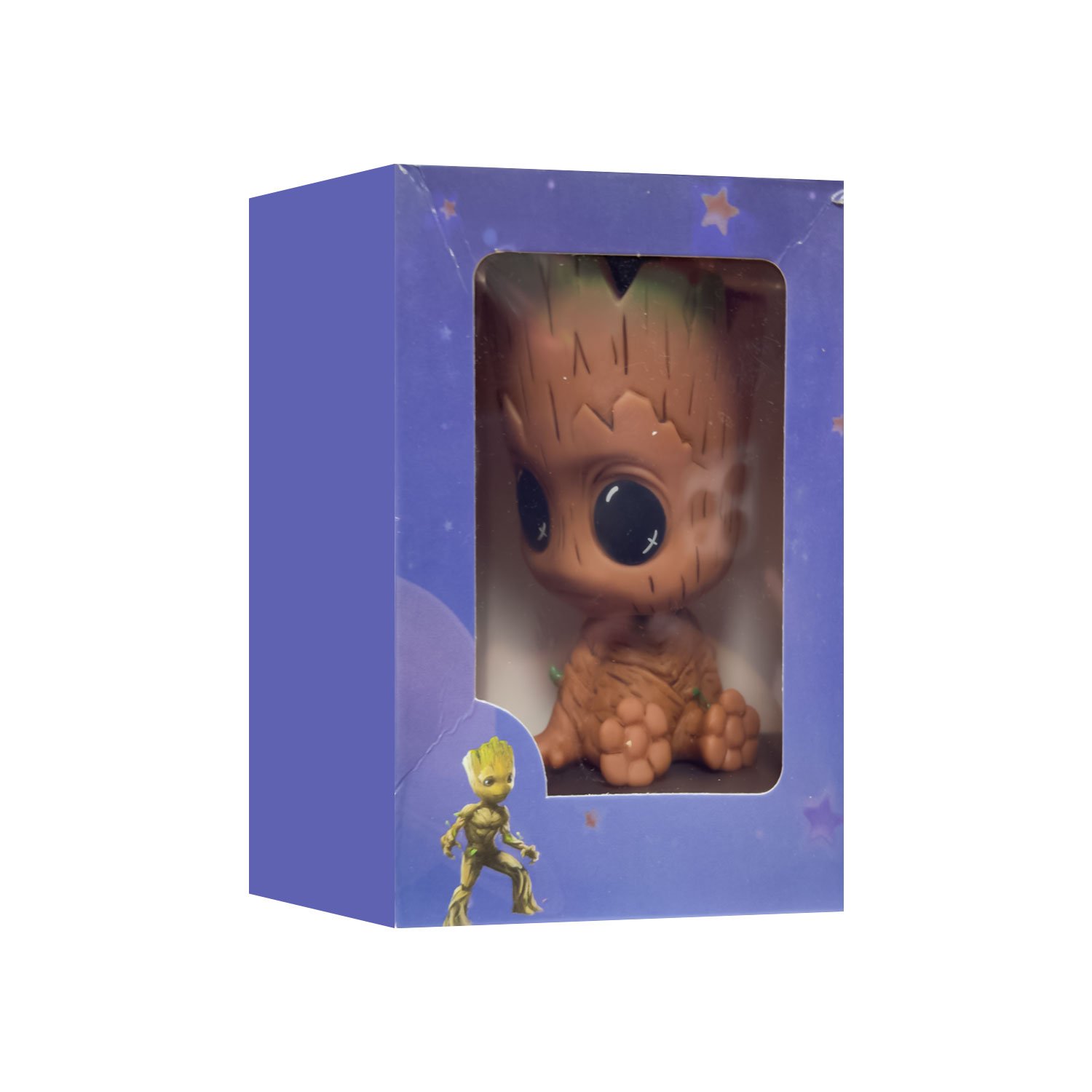 La figura de Groot, fabricada en materiales de alta resistencia. La pieza perfecta para resaltar el valor y la naturaleza heroica del guardián en tu colección “Cabezón Groot”.