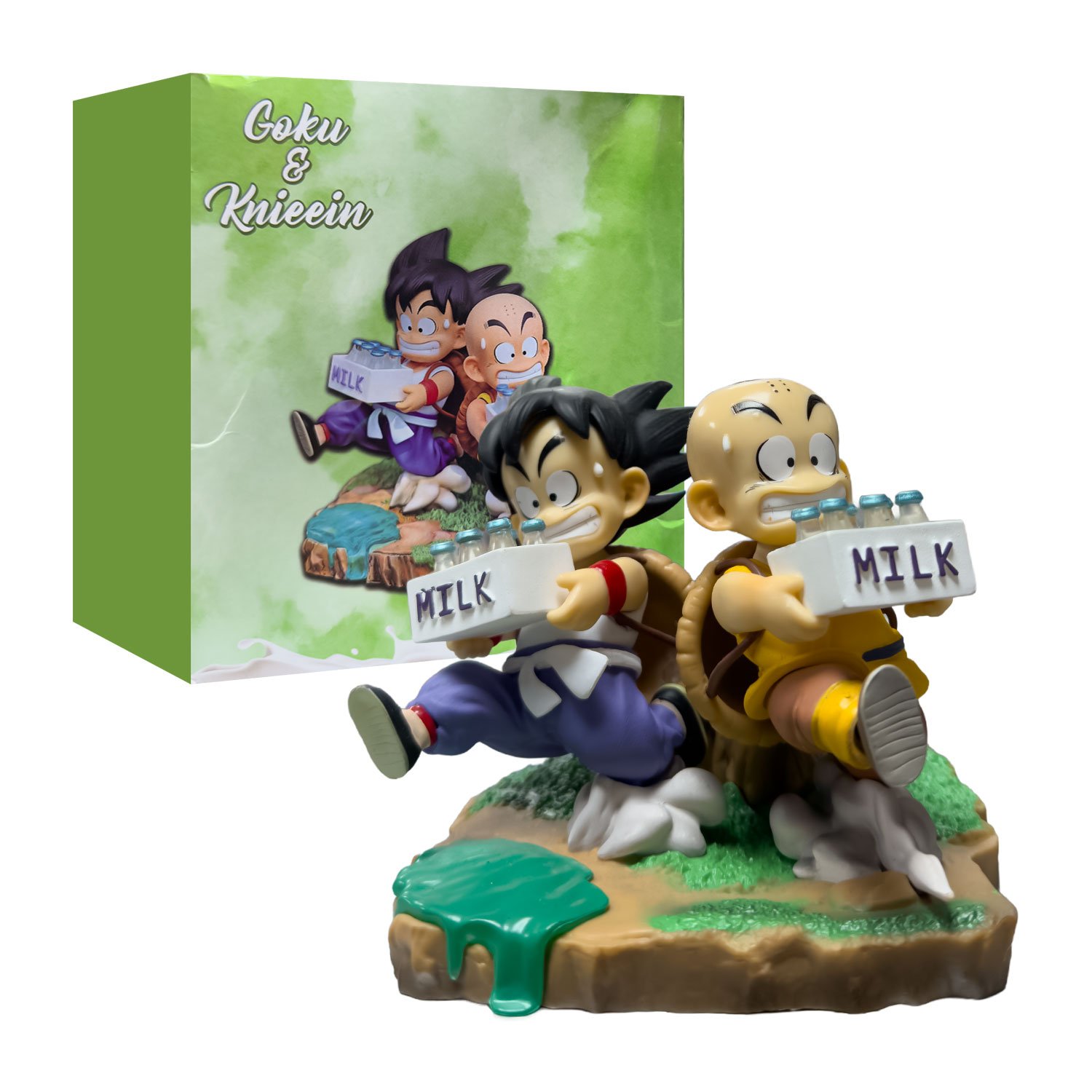 La Figura Goku Y Krilin Corriendo presenta a los jóvenes aprendices de la Escuela Tortuga en una versión coleccionable que resalta el esfuerzo, la rivalidad amistosa y los inicios de la gran aventura de Akira Toriyama. Esta pieza captura con gran detalle el icónico entrenamiento de repartir leche, mostrando a Goku y Krilin cargando sus cajas mientras corren con sus caparazones de tortuga a la espalda, resaltando el diseño nostálgico que marcó la infancia de toda una generación.