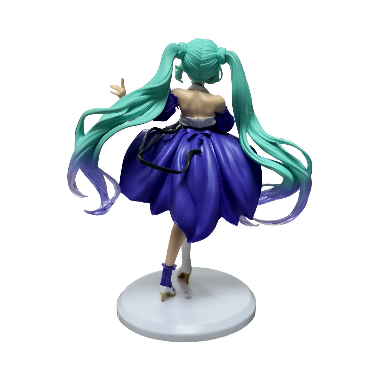Fabricada con materiales resistentes y buenos acabados, la Hatsune Miku Con Báculo destaca por el modelado de su característico cabello turquesa en largas coletas, el vestido con detalles en tonos morados y blancos, y la base que permite exhibirla de forma estable. La pose dinámica y alegre transmite perfectamente la energía del personaje.