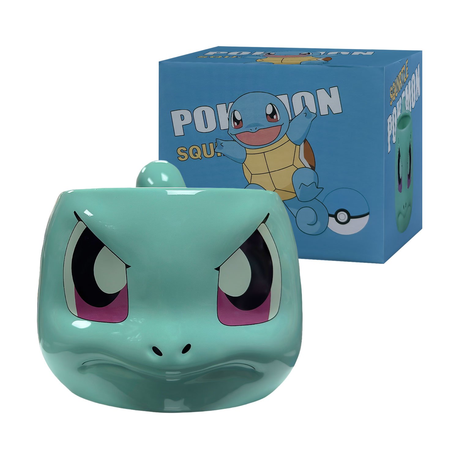 La taza de Squirtle, fabricada en cerámica con diseño 3D de su rostro y acabados de alta definición. La pieza perfecta para resaltar el estilo y la lealtad a tu inicial de agua en tu colección “Taza Squirtle Pokémon 800ml”.